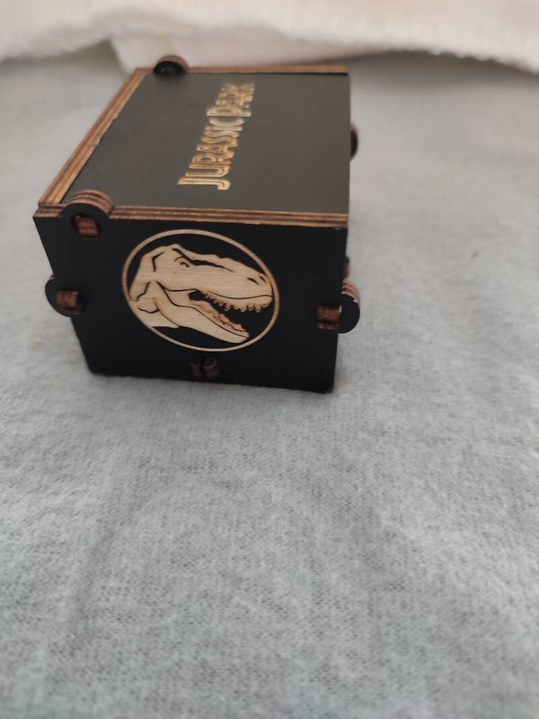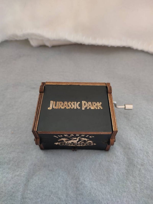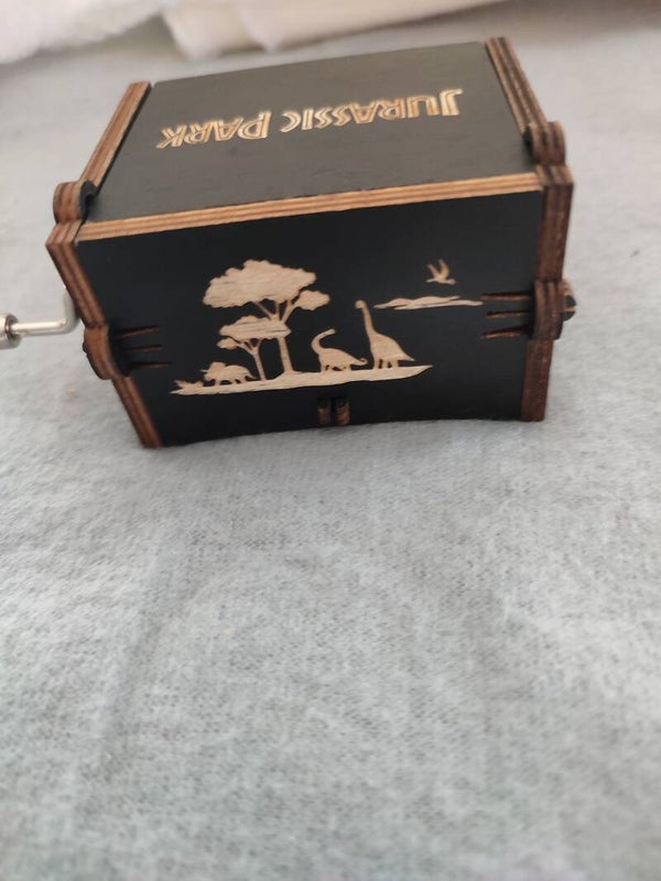 Dies ist ein ideales Geschenk für Filmfreunde, Dinosaurierliebhaber und Kinder der 90er. Die Melodie des Films Jurassic Park ist einfach unverkennbar und lässt Erinnerungen zurück kehren. Dazu ist die Gestaltung der Spieluhr einfach ein wahrer Hingucker. In schwarz gehalten mit detallierten Abbildung im Aussenbereich der kleinen "Kiste" und dem farbenfrohen Titelbild im Innendeckel ist es eine wundervoll gefertigte Spieluhr.