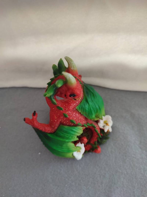 Super Süß und niedlich ist aus der Drachenreihe "Strawberry". Dieser kleine rote niedlich schauende Drache ist bereit zum Auszug. Er freut sich auf eine neue Vitrine, die ihm einen Platz bietet.
