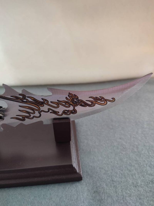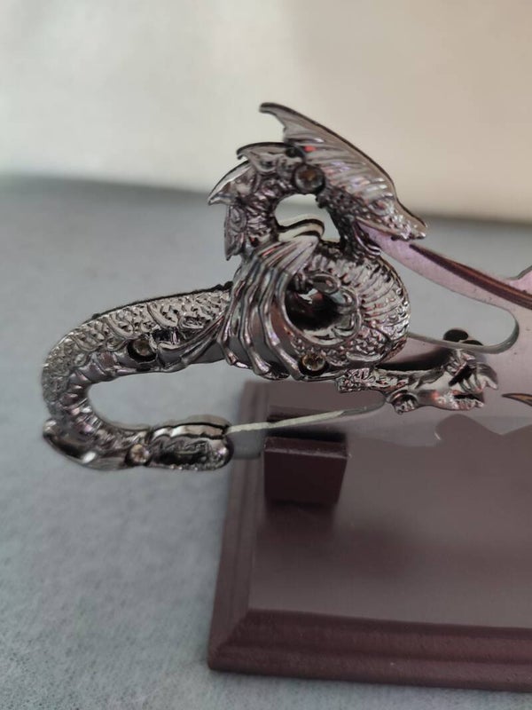 Dieser stehende Drachendolch ist ein echtes Highlight für die Vitrine. Die Flamme als Klinge ist verziert, der Drache steht als Griff.