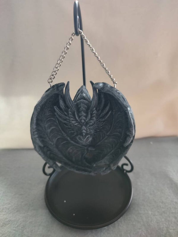 Dieser detalliert ausgearbeitete Drache birgt in seinem Rücken einen Einsatz zum einlegen eines Räucherkegels. Ein wundervolles Geschenk für Räucherbegeisterte und Liebhaber der Mystischen Wesen.