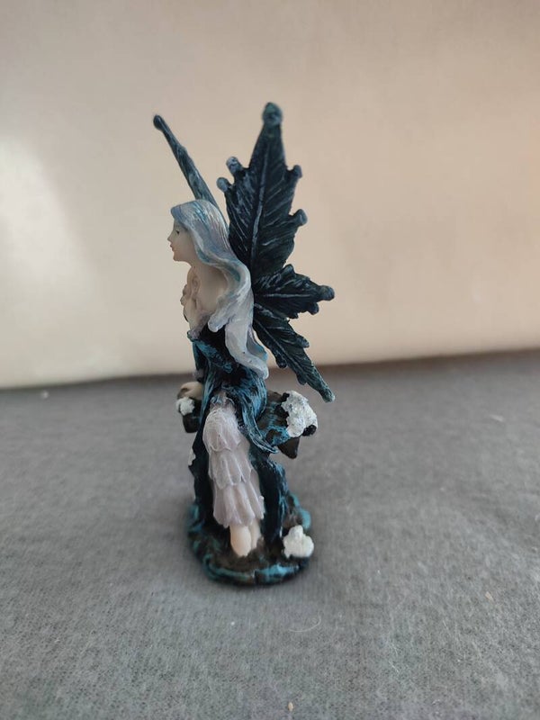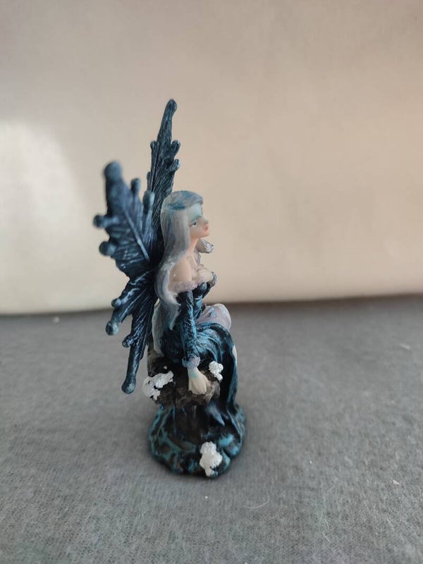 Diese Fee ist detalliert und fein verarbeitet. Die Flügel sind in blau gehalten. Ein Hingucker für jede Vitrine. Holt Euch Magie in Euer zu Hause.