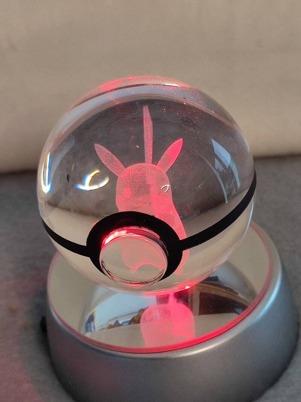Dieser Pokeball hat es in sich, es behütet ein besonderes Geheimnis. Wenn ihr das Licht des Plateaus anstellt zeigt sich ein Pokemon und leuchtet in den verschiedensten Farben. Ein tolles Geschenk für Liebhaber des Animes.