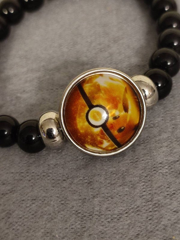 Dieses schwarze Perlenarmband mit dem Pokaball Anhänger beherbergt verschiedene Pokemon in seinem Inneren. Ein tolles Geschenk für kleine und große Fans des Animes.