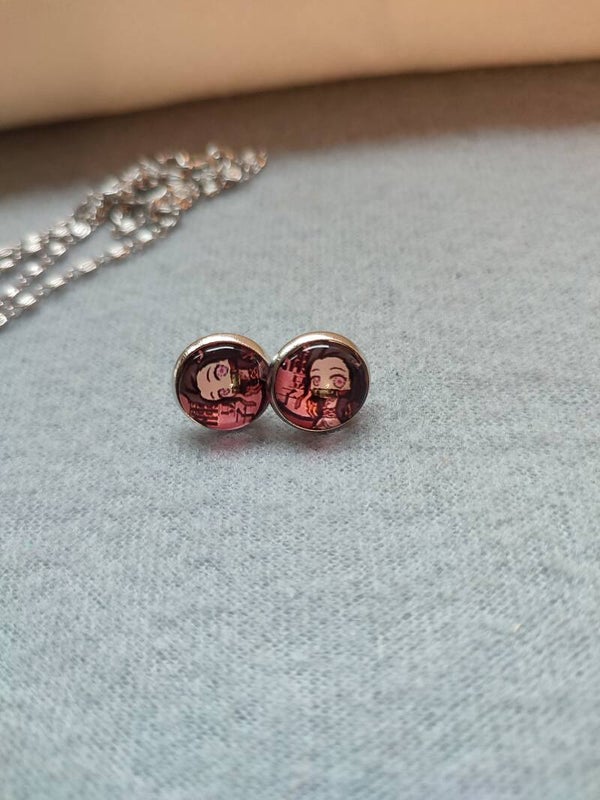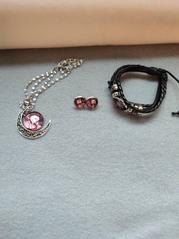 Ein ideales Geschenkset für Fans dieses Anime. Nezuko ist auf dem Lederarmband, der Kette und den Ohrringen abgebildet.