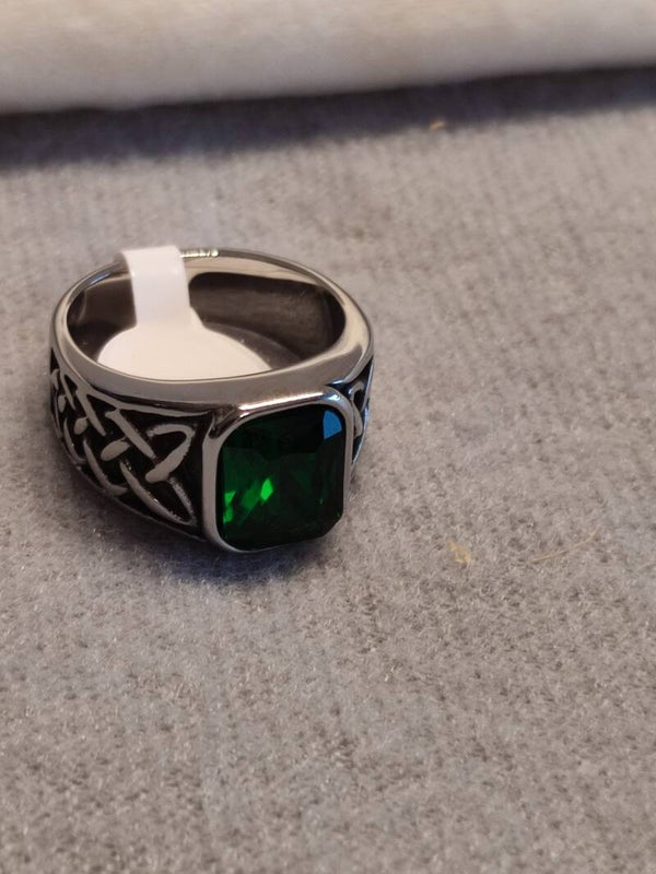 Dieser Edelstahlring wird durch keltische Knoten verziert, die den grünen Stein als Fassung dienen. Ein mystischer Hingucker nicht nur für Edeldamen geeignet. Der Ring kommt aus dem Hause etNox und ist eine tolle Geschenkidee.