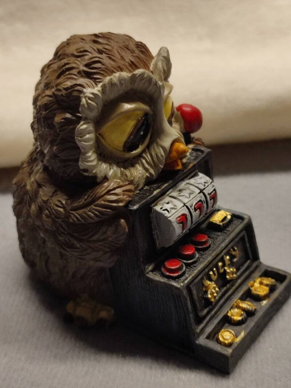 Aus der Lustigen Eulen Reihe stammt diese niedliche Eule "Jackpot" am Spielautomat. Einfach ein glücksgriff ist diese dekorativ gestaltete Eule.