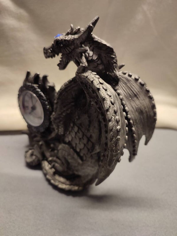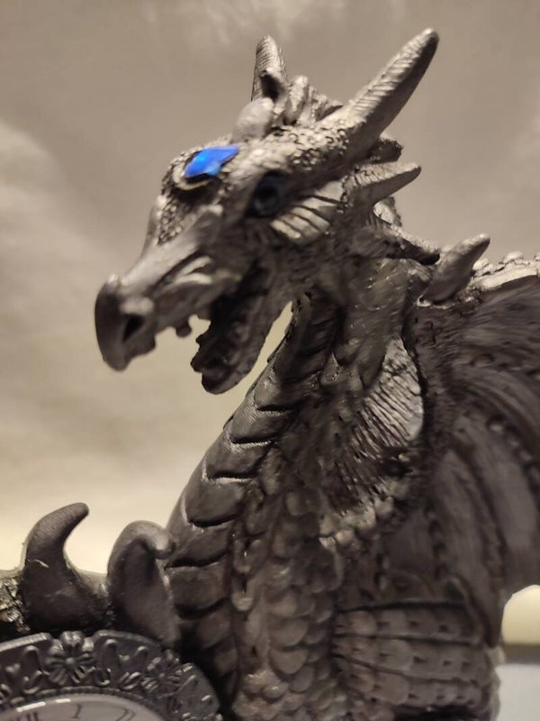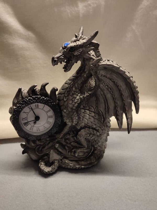 Der Drache ist detalliert und liebevoll gestaltet worden und hält die Zeit wörtlich in seinen Klauen.