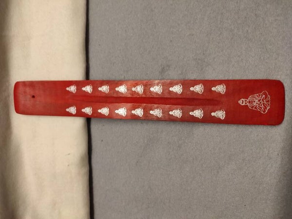 Klassisch designte Räucherstäbchenhalter aus Mangoholz gefertigt farbenfroh gestaltet und mit einem Buddha verziert. Ein toller Einstiegshalter für jeden der das Räuchern schätzt.