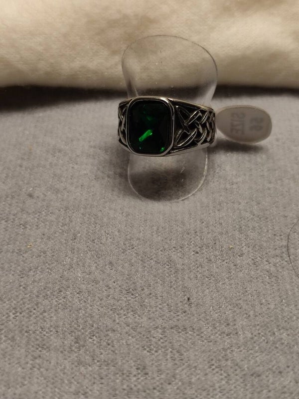 etNox Edelstahlring "grünen Zirkonia Drop"