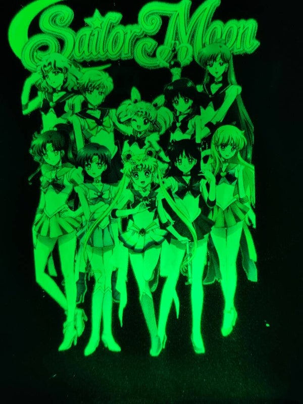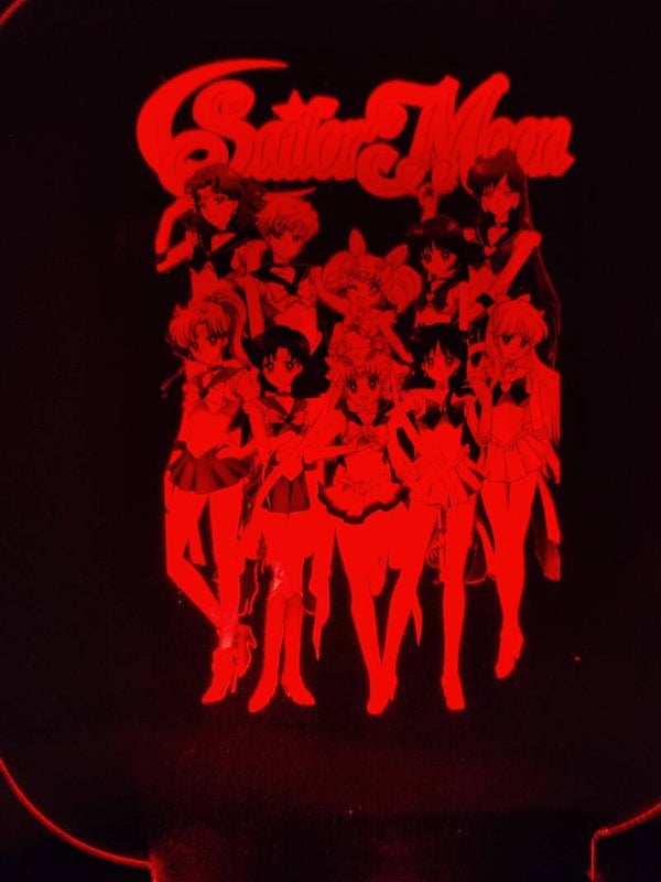 Auf dieser Fotolampe ist die Kriegerinnen Truppe des Universums aus der Anime-Serie Sailormoon aus den 90ern zu sehen.