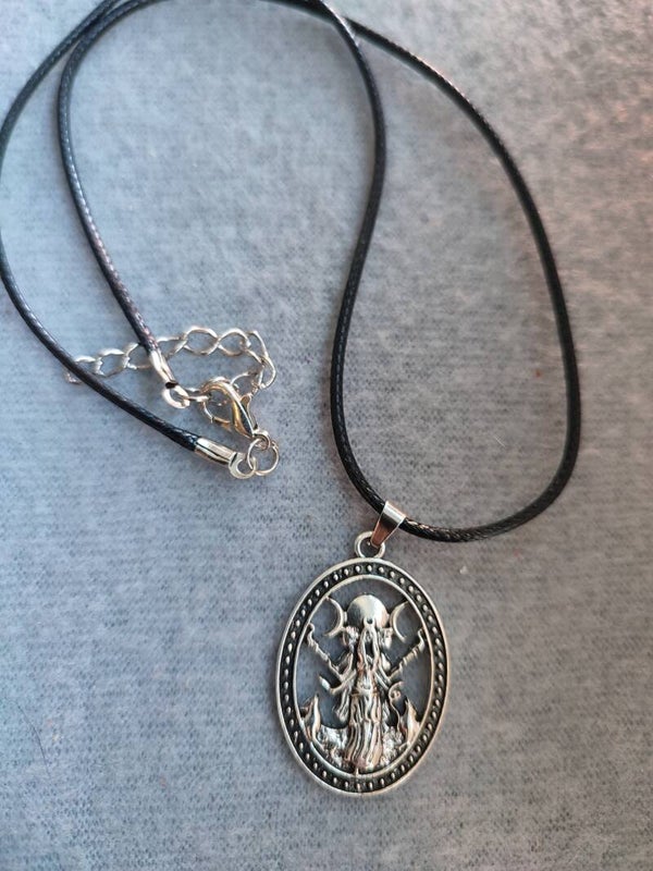 Magie und Mythologie verbinden sich in dieser Halskette, die Göttin der Antike Hecate wurde in der "Dreigestaltigen" Darstellung in einem Halskettenanhänger verewigt.