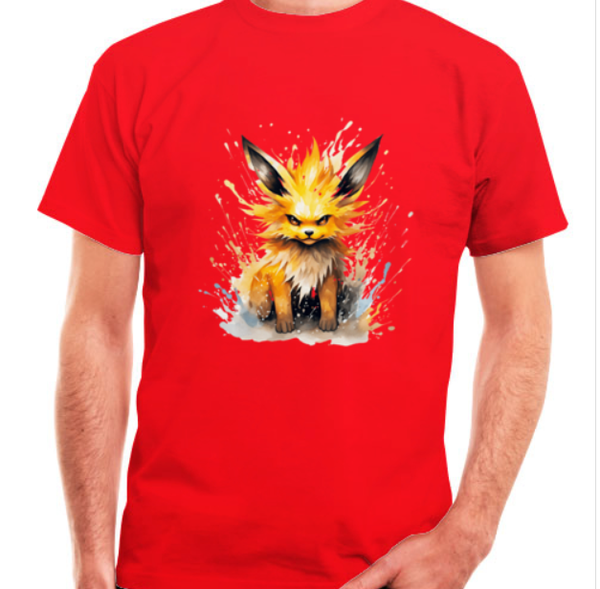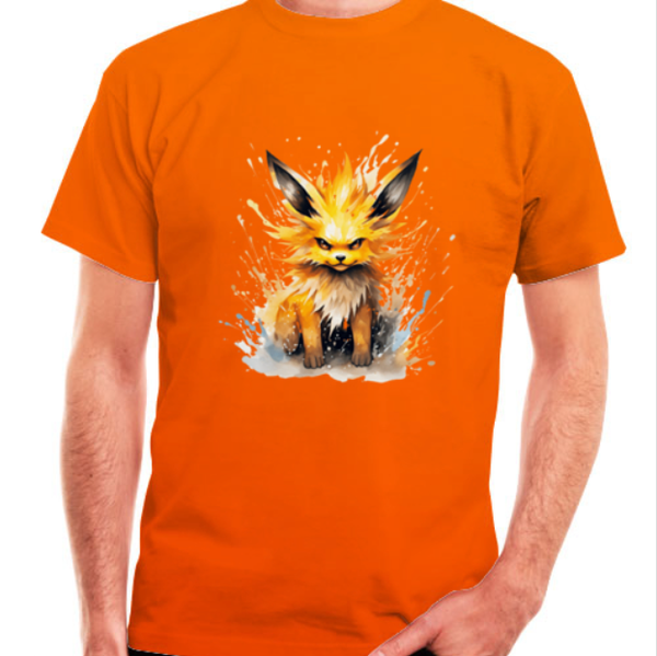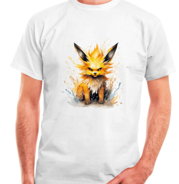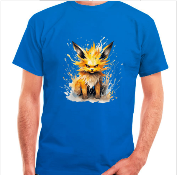 Angelehnt an die Serie Pokemon wurde das niedliche Wesen, das an Blitza erinnert für Euch auf farbenfrohe T-Shirts designt.