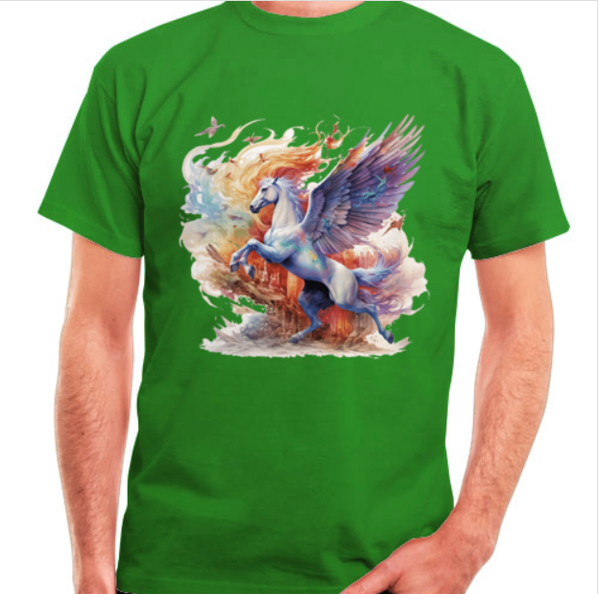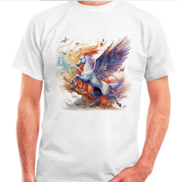 Imposant ziert Pegasus dieses T-Shirt und beigestert jeden Fan der Mystik.