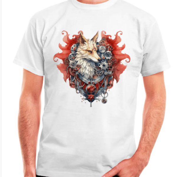 Ein umwerfendes Steampunk Design ein Wolf im roten Herz ziert die T-Shirts.