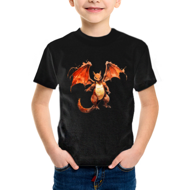 Dieses Baumwoll T-Shirt ist angelehnt an das Pokemon Glurak und zeigt den majestätischen Drachen in der Flugpose.