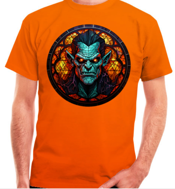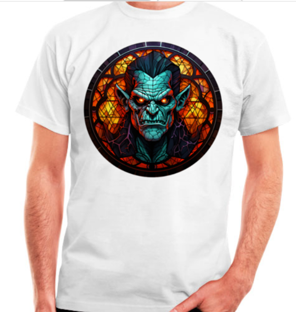 Als Glasornament deignt prankt der König der Nacht auf der Front des T-Shirts, ein Eyecatcher schlecht hin und je nach farblichen Untergrund, hat es eine andere Wirkung auf den Bterachter.