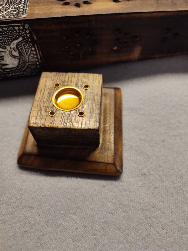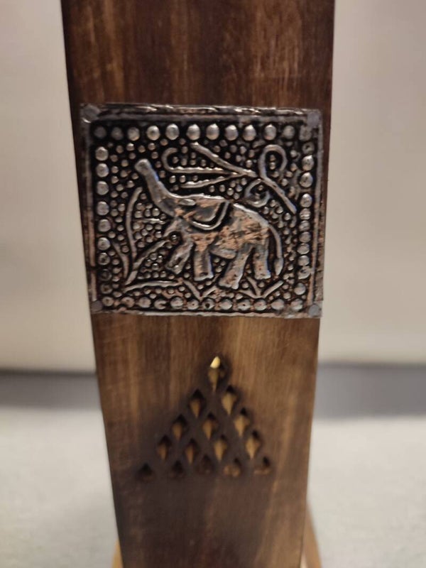Dieser Räucherturm ist sowohl für Kegel als auch für Stäbchen geeignet. Der Rauch dringt aus den kleinen Öffnungen heraus. Ideal für Räucherfreunde die Kinder oder Haustiere haben. Der Elefantenbeschlag ist ein idealer Blickfang.