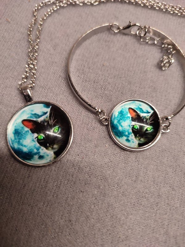 Dieses tolle Schmuckset besteht aus einer Kette, Ohrringen und einem Armband ein tolles Geschenk für Liebhaber der sanften Fellnasen.
