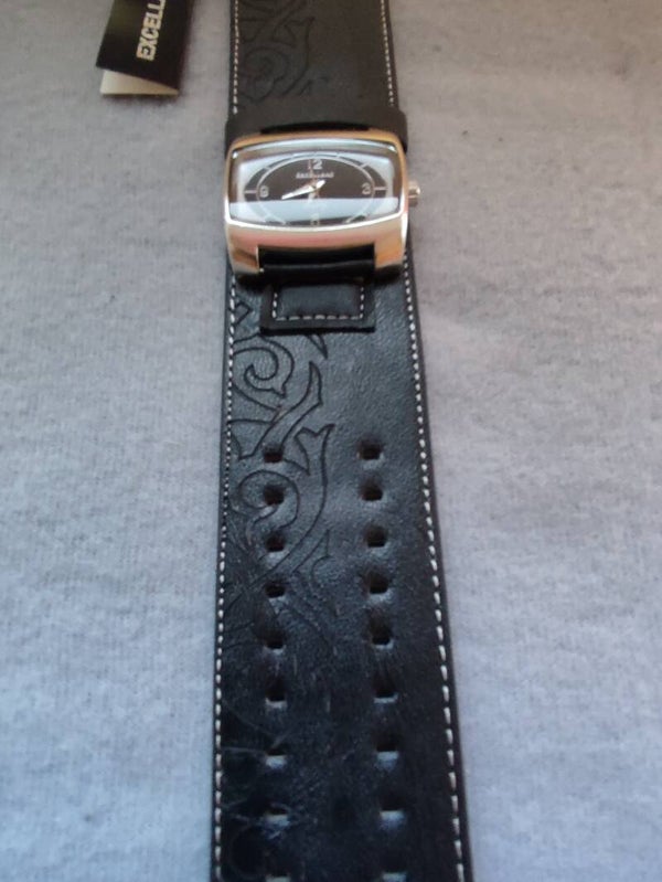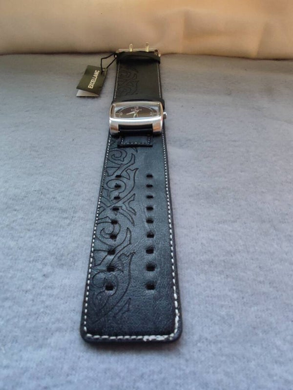 Diese Armbanduhr aus dem Hause Excellanc ist eine phantasievoll designte Analoguhr, die am Lederband Eingravierungen in Tribalform besitzt, ein dezentes und doch stilvolles Detail, das diese Uhr, die rechteckig geformt ist, zum wahren Blickfang macht.