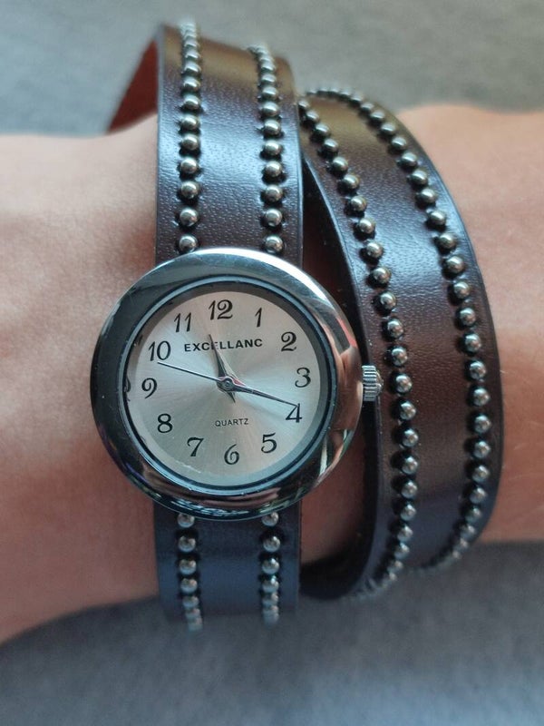 Dieses Wickelarmband aus lederimitat ist ein optisches Highlight entseht durch die Nietenverzierung, eine Armabnduhr als Armband individuell kombinierbar.