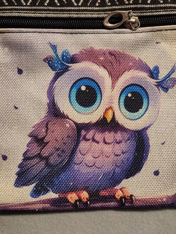 Diese kleine Handtasche ist auf der Front mit einer niedlichen Eule bedruckt auf der Rückseite ist ein Muster eingewoben.