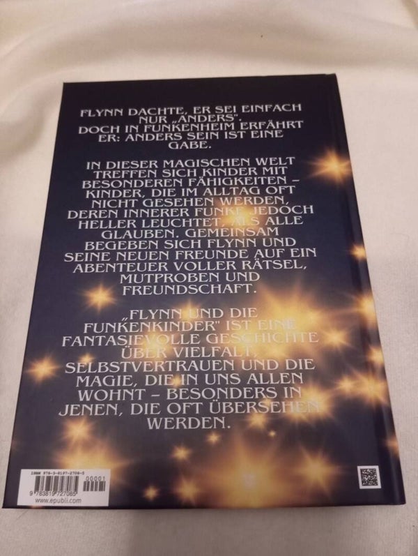 Flynn dachte, er sei einfach nur „anders". Doch in Funkenheim erfährt er: "Anders" sein ist eine Gabe. In dieser magischen Welt treffen sich Kinder mit besonderen Fähigkeiten Kinder, die im Alltag oft nicht gesehen werden, deren innerer Funke jedoch heller leuchtet, als alle glauben. Gemeinsam begeben sich Flynn und seine neuen Freunde auf ein Abenteuer voller Rätsel, Mutproben und Freundschaft. „Flynn und die Funkenkinder" ist eine fantasievolle Geschichte über Vielfalt, Selbstvertrauen und die Magie, die in uns allen wohnt. besonders in jenen, die oft übersehen werden.